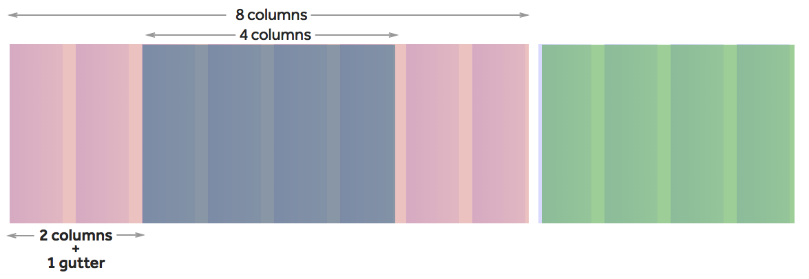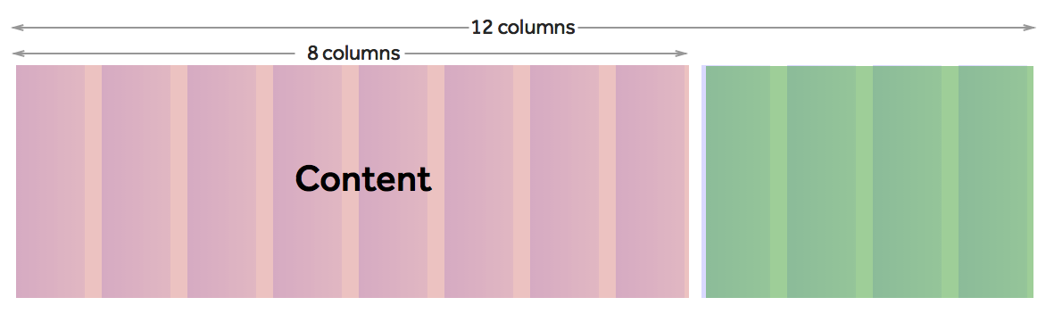 .content { // This is equivalent to @include span(8 of 12); @include span(8);}Let’s take it a step further and identify the context within nested grids. If we wanted to build something like this: