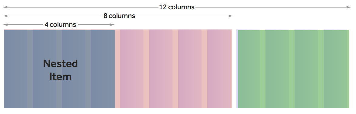 .nested-item { @include span(4 of 8); margin-left: span(2 of 8) + gutter(8); // Alternatively, you can write margin-left: span(2 wide of 8)}And with this, the .nested-item is centred within .content.