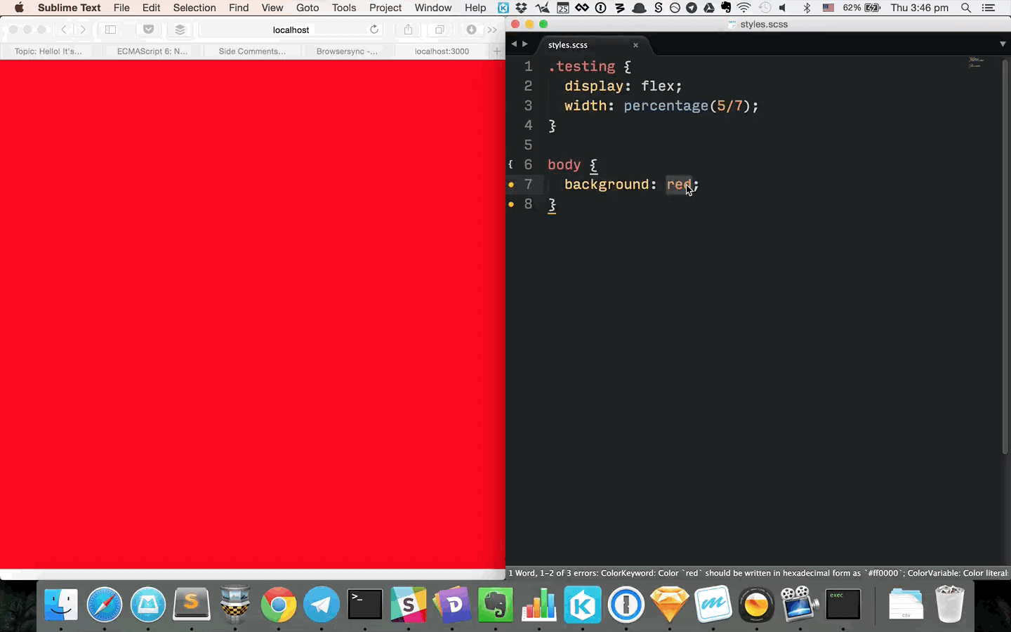 .testing { display: flex; width: 71.42857%;}This means our styles.scss file has successfully been compiled into CSS.