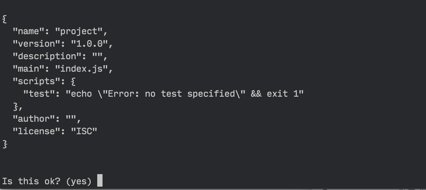 $ npm initThis npm init command asks you a few questions and creates a package.json file to store information about dependencies that you’ll use in this project.