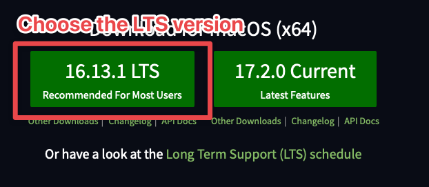 The easiest way to install Node is head over to NodeJS’s website and download the LTS version.
