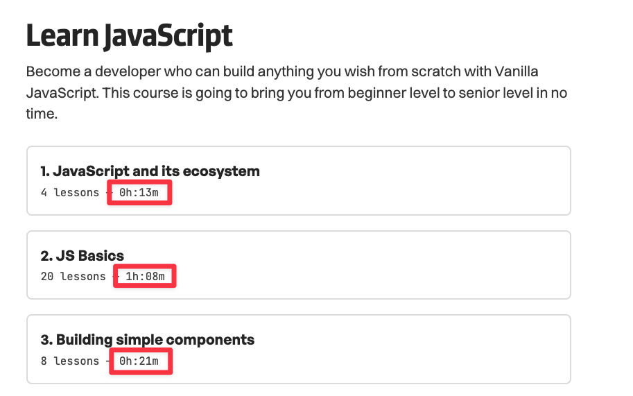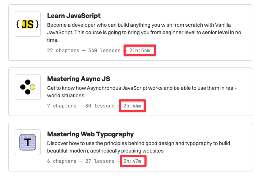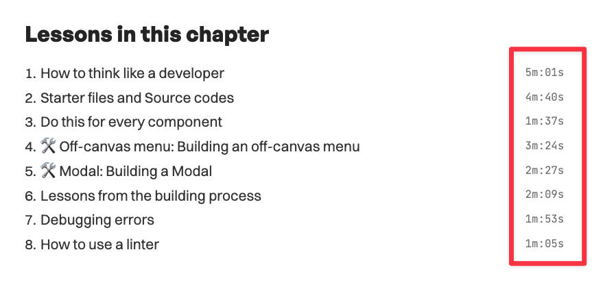 Last but not least, I have added estimated timestamps to all courses, chapters, and lessons.