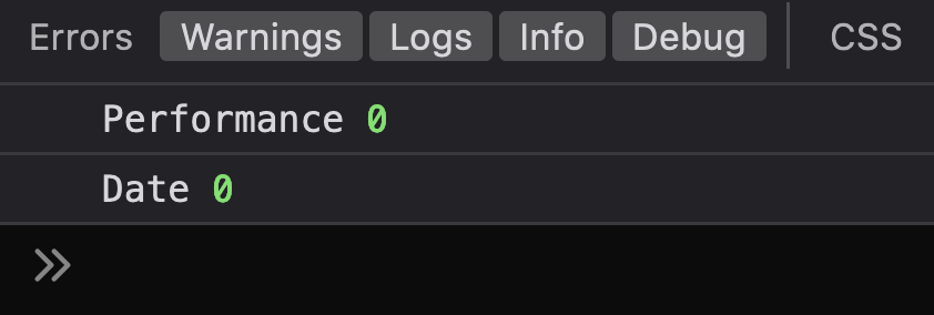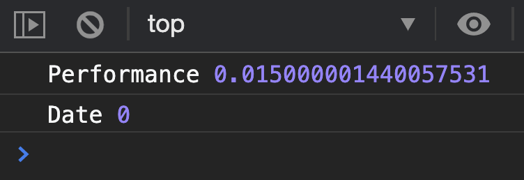 const count = 10000000perf( 'Performance', _ => { return 1 + 1 }, count,)perfDate( 'Performance', _ => { return 1 + 1 }, count,)