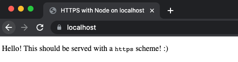 server.listen(443, _ => { console.log('App listening at https://localhost')})Final thing to do is load your site at https://localhost and you’re done!