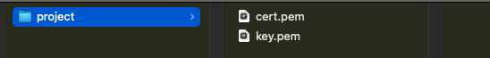 # Generates certificates for localhost and 127.0.0.1mkcert localhost 127.0.0.1This creates two pem files.