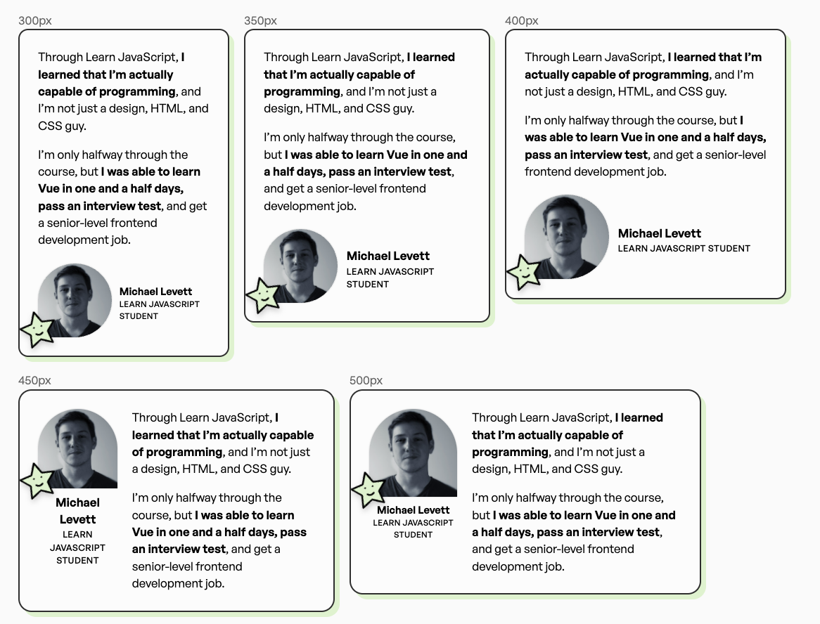 Container queries are amazing. They let us build UI that allow a component looks good no matter what size the component is displayed at.