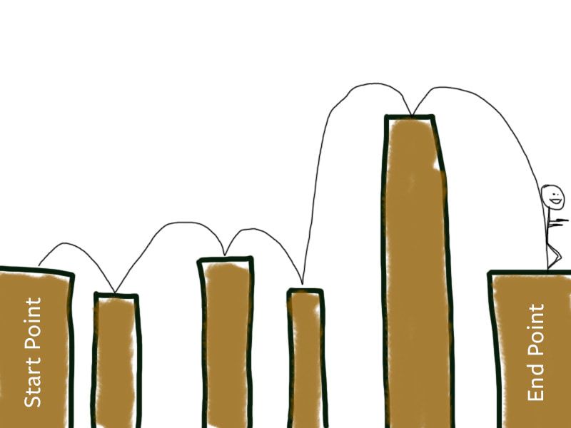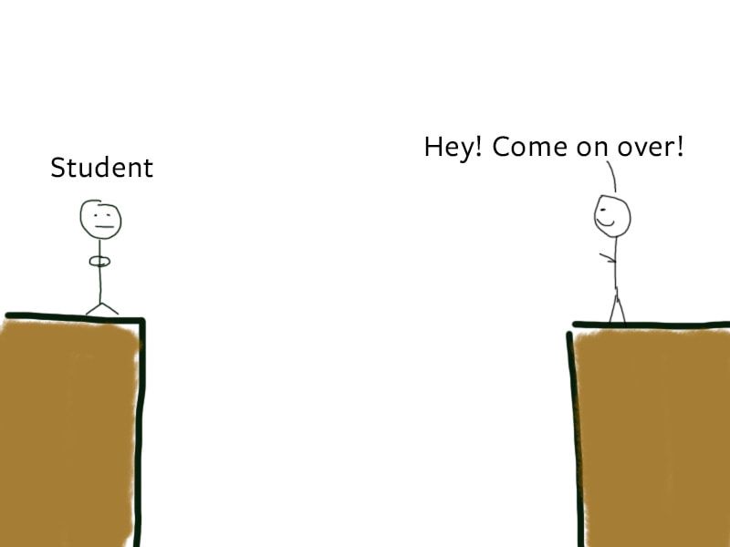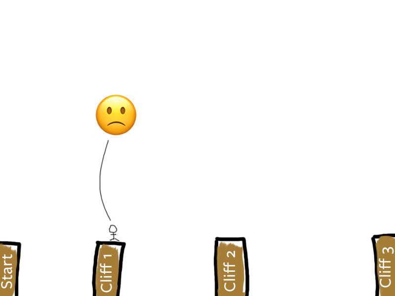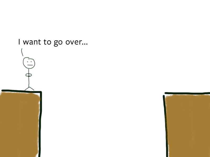 Let’s say you want to learn JavaScript. All you know is you’re on one side of a cliff. The endpoint is on the other side of the cliff.